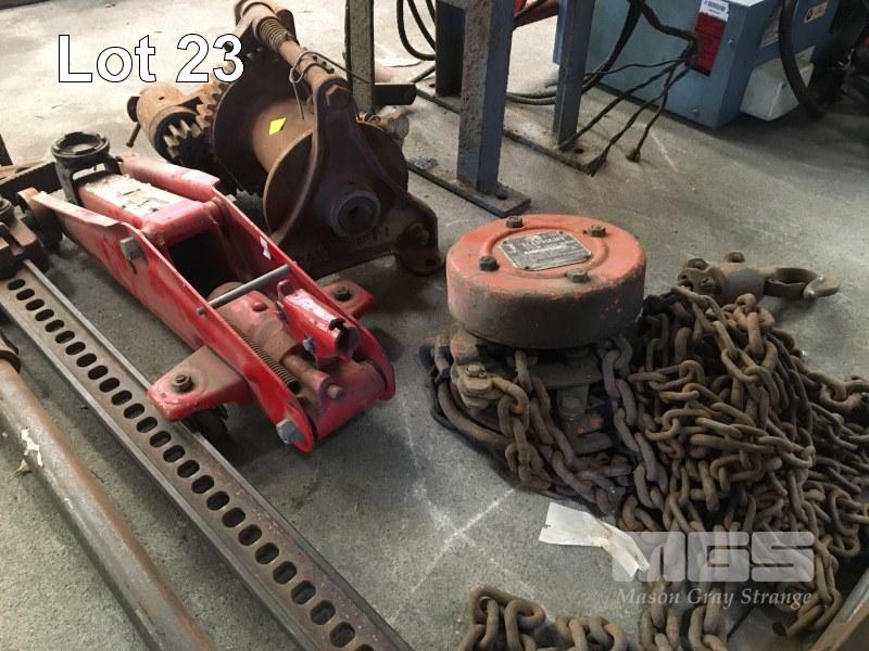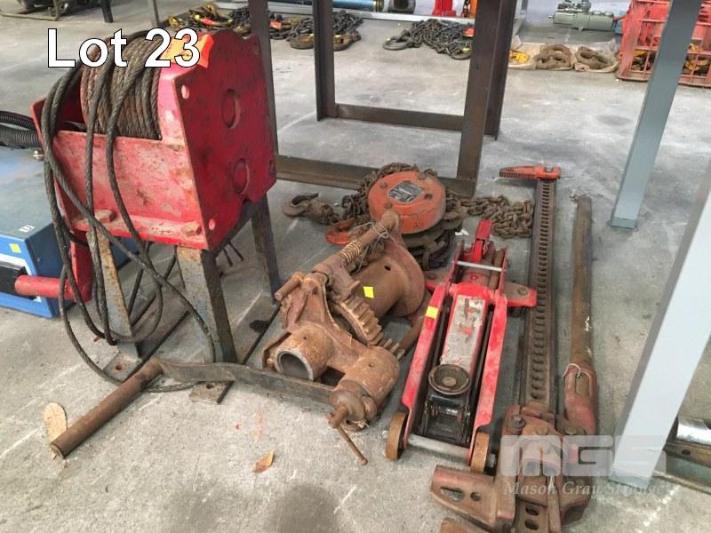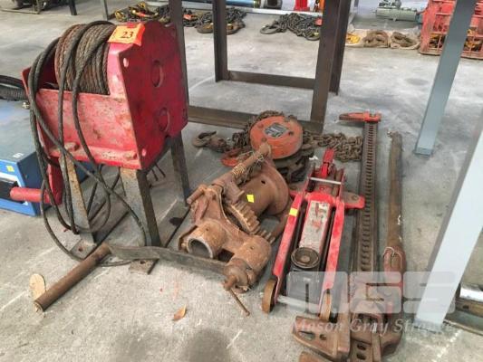 2 x HEAVY DUTY WINCHES, MANUAL, 1 x CHAIN HOIST, 1T, CAR TROLLEY JACK & HIGH LIFT 4x4 JACK