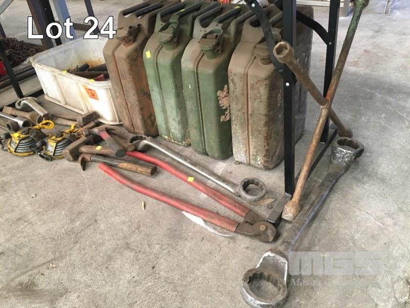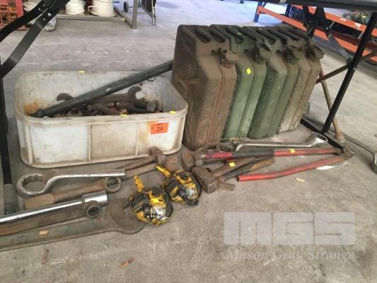 RING SPANNERS, JERRY CANS, TOOLS, ETC