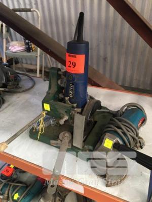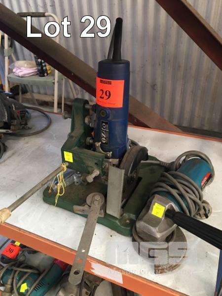 BOSCH ANGLE GRINDER, 110mm & OZITO ANGLE GRINDER, 125mm MOUNTED IN TOOLMAC CUT OFF STAND, 240V
