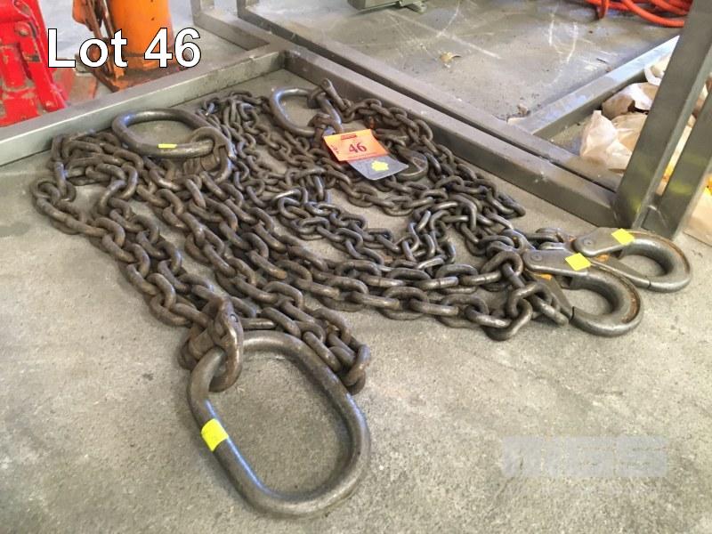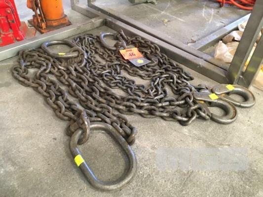 2 x LIFTING CHAINS, 7mm, TWIN LEG WITH SHORTENERS, 2m & SINGLE 10mm WITH RINGS, 3m, 2T