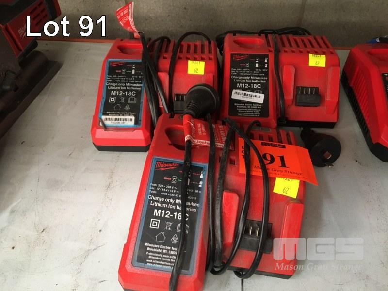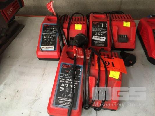 3 x MILWAUKEE CHARGERS, M12-18C, 240V