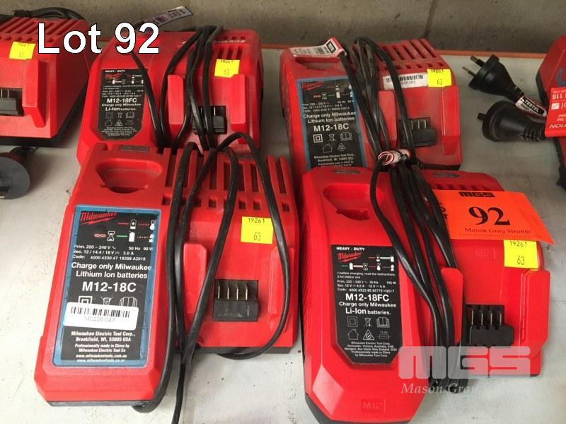 4 x MILWAUKEE CHARGERS, M12-18C, 240V