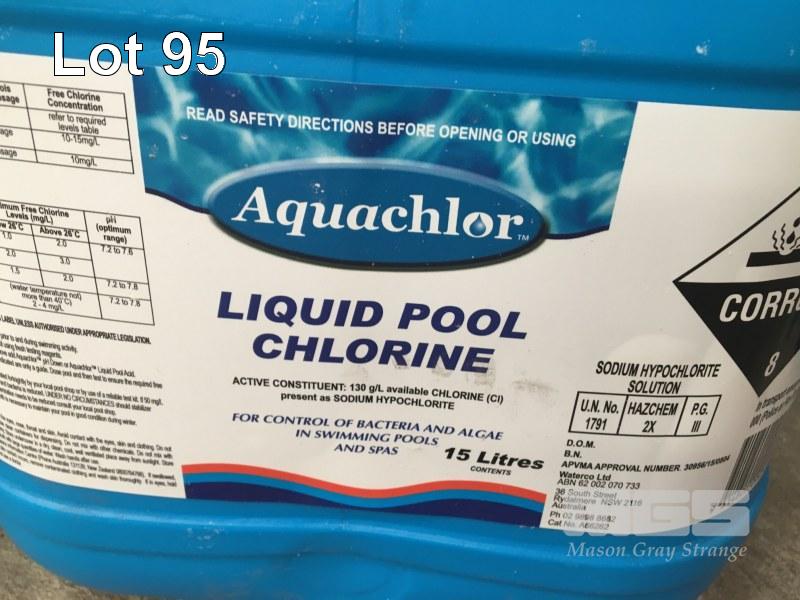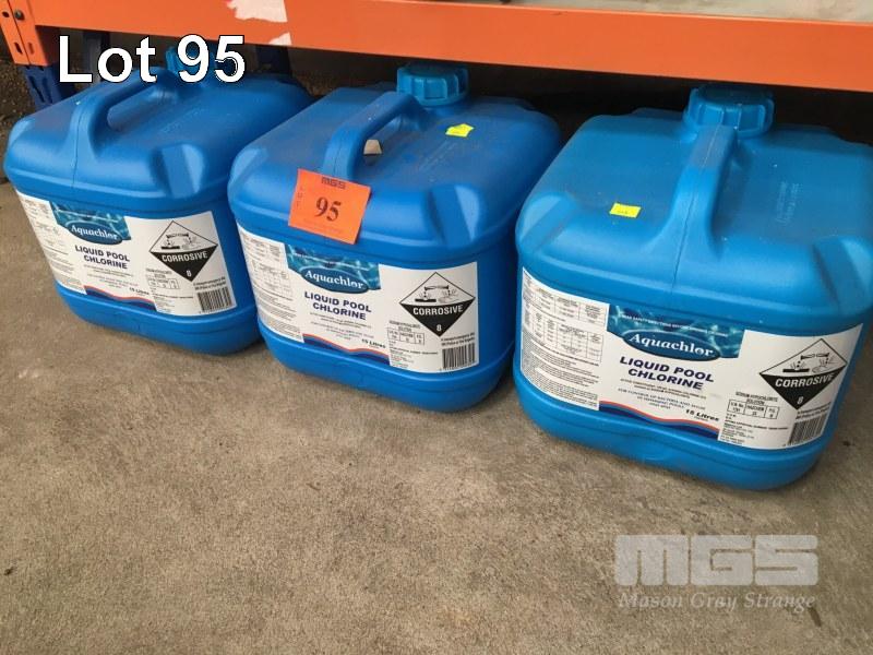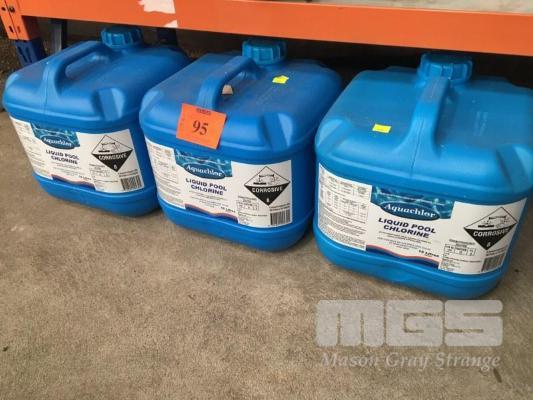 3 x 15 LITRE DRUMS LIQUID POOL CHLORINE, AQUACHLOR 130G/L SODIUM HYPOCHLORITE