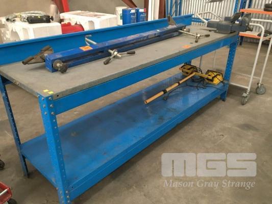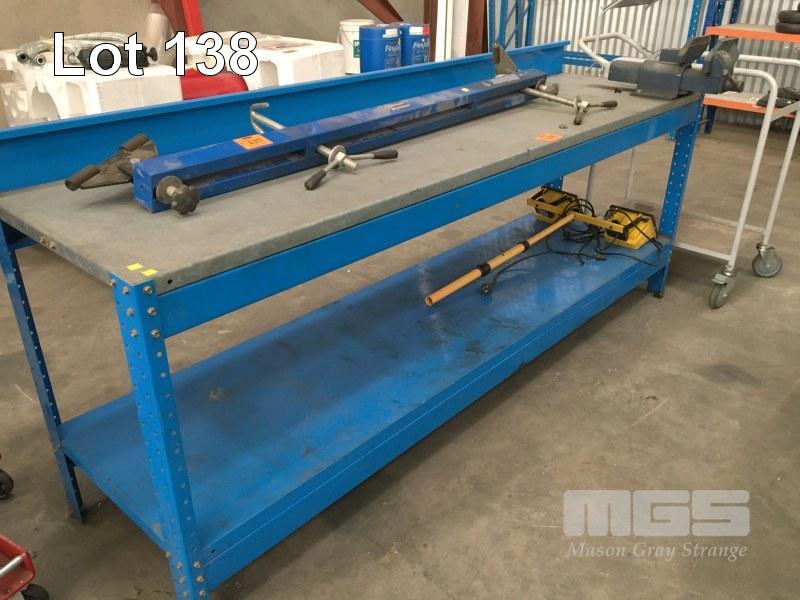 WORKSHOP BENCH, 240 x 60cm, 2 TIER WITH 6" OFFSET VICE