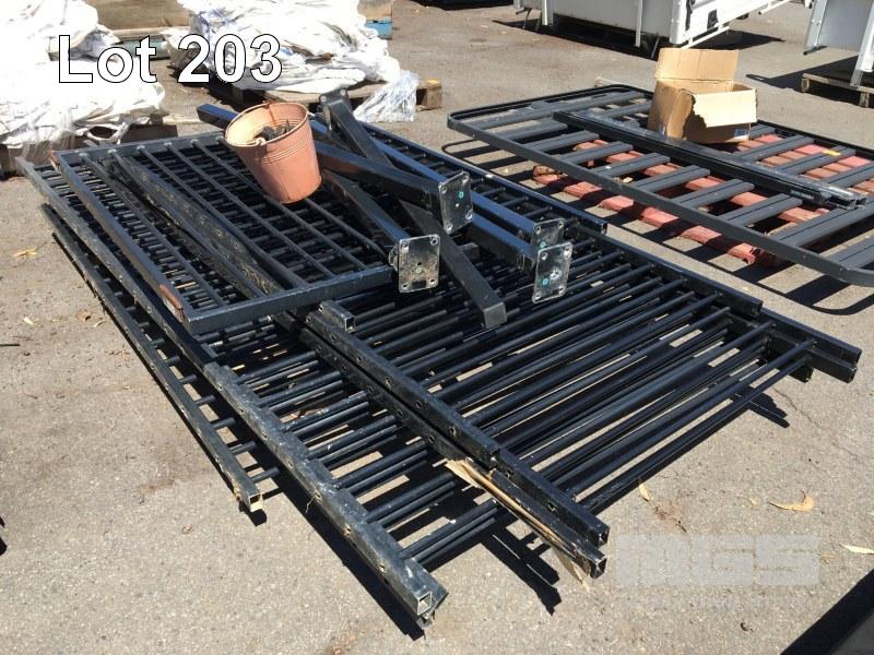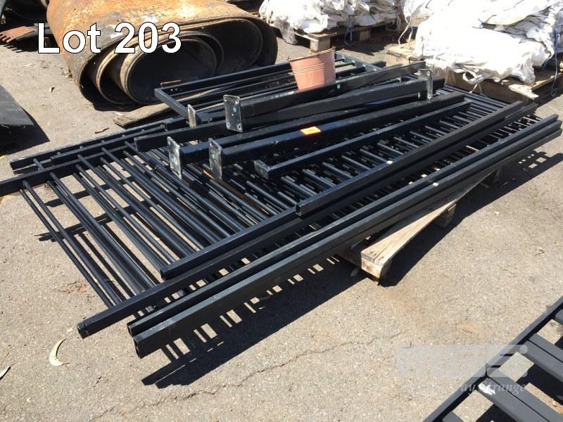 7 x ALLOY FENCE PANELS, BLACK & POSTS