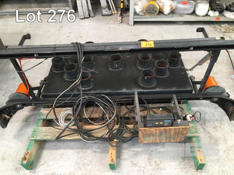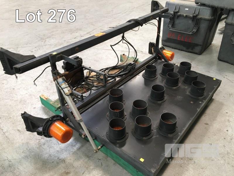 LED TRAFFIC CONTROL BOARD WITH DIRECTIONAL ARROWS, 1200 x 650mm WITH WAUGH TECH MOD: 2.2A DIGITAL CONTROLLER, CABLING, ETC MOUNTED TO RHINO ROOF RACKS WITH AUTO RAISE & LOWER & LED WARNING LIGHTS