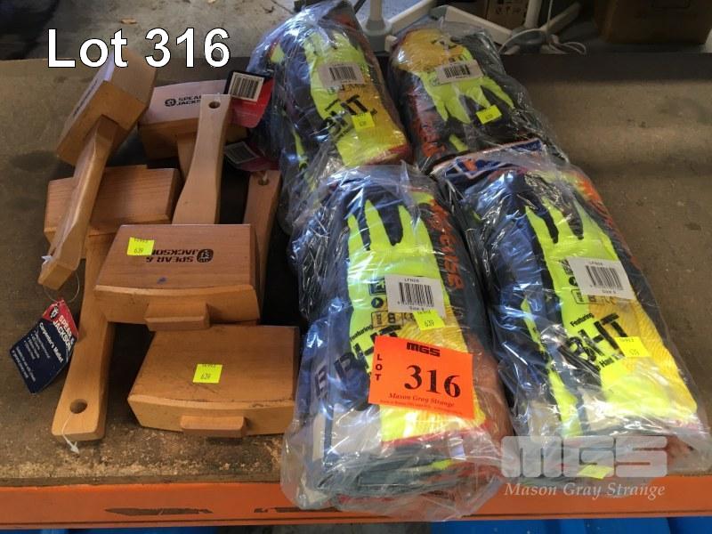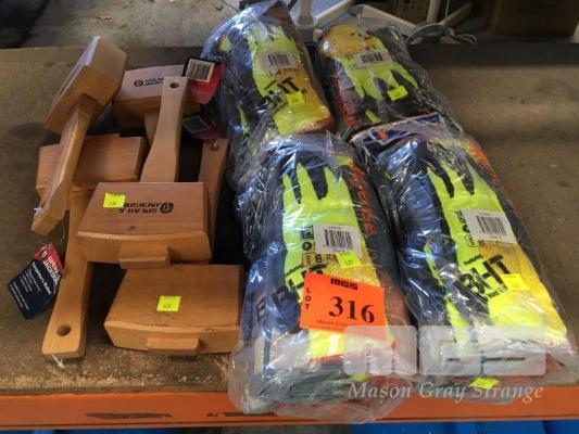 40 x PAIRS PROSENSE HI-VIS GLOVES & 5 x SPEAR & JACKSON WOODEN MALLETS