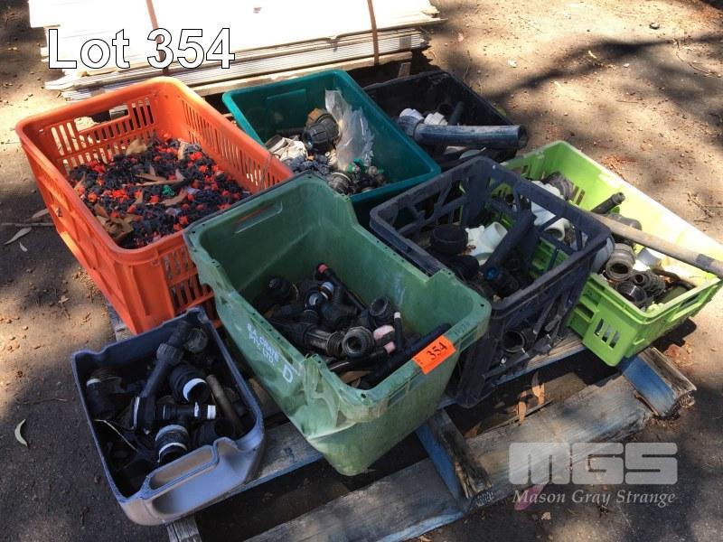 7 x CRATES ASSORTED PHILMAC POLY HOSE & IRRIGATION, FITTINGS & SPRINKLERS