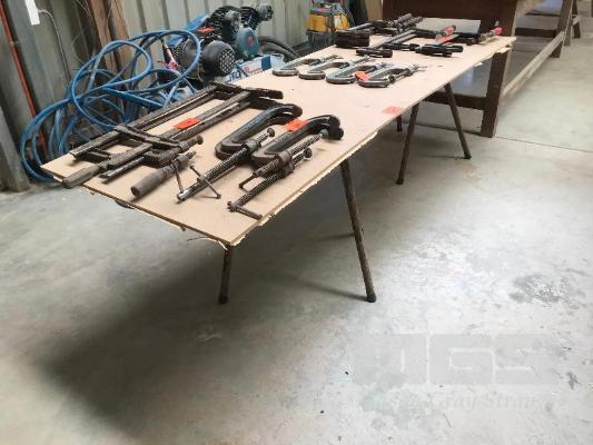 TRESTLE BENCH, MDF TOP, PAIR TRESTLE LEGS, 2200mm (W) x 700mm (D) x 600mm (H)