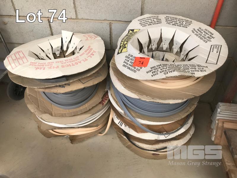 9 x ROLLS PLASTIC FURNITURE EDGING, BEIGE, WHITE, GREY & BLACK