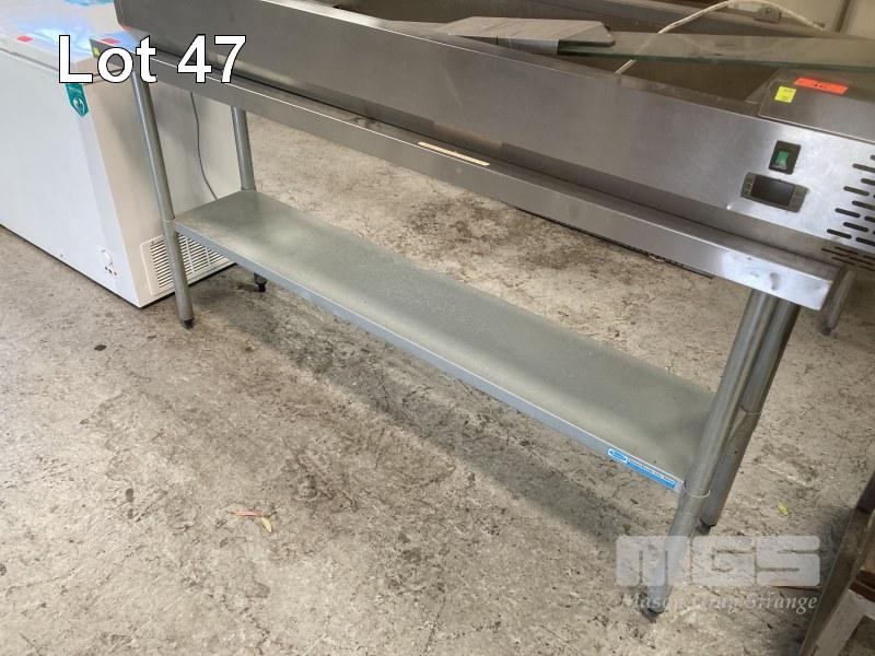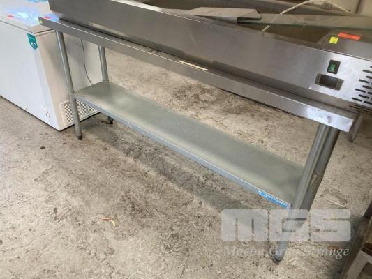 STAINLESS STEEL TOP PREP BENCH, 180 x 45cm, 2 TIER WITH SPLASHBACK