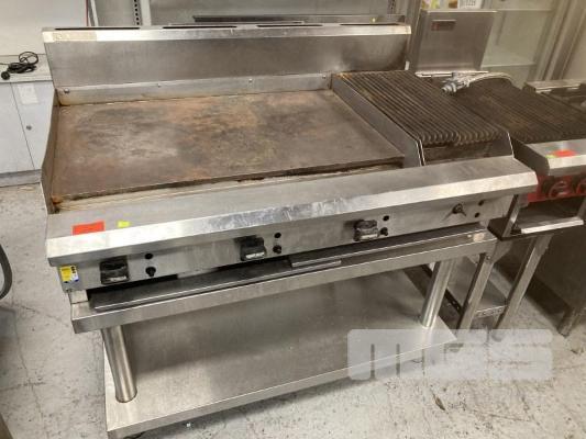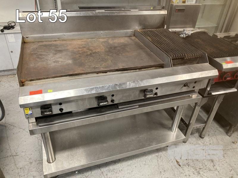 COMBINATION GRIDDLE PLATE/CHAR GRILL, LUUS 4 BURNER, 120cm, GAS (MISSING 1 x KNOB & DRIP TRAY)