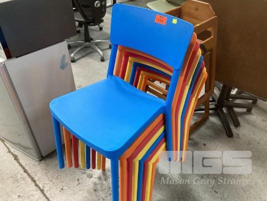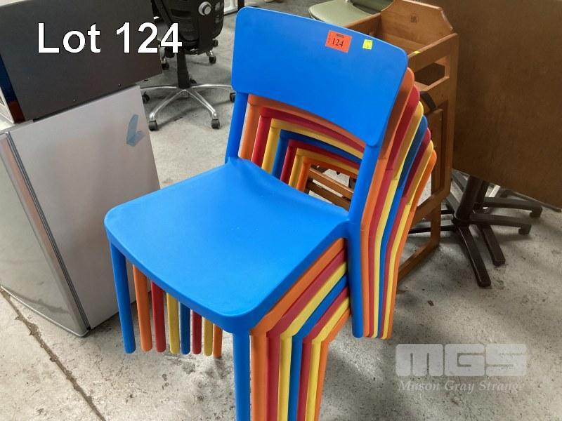 8 x PVC OUTDOOR CHAIRS, ASSORTED COLOURS