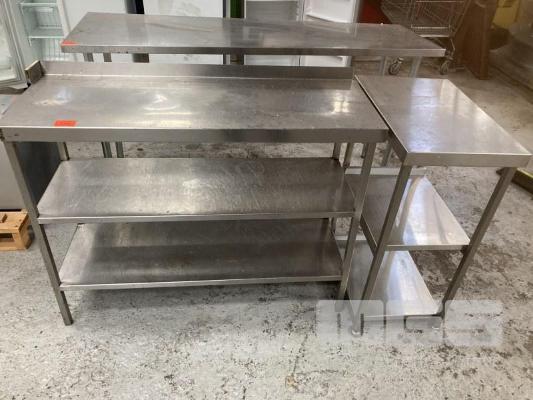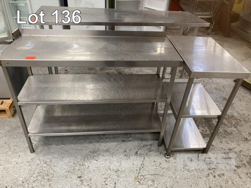 2 x STAINLESS STEEL BENCHES 118 x 42cm & 40 x 60cm EACH 3 TIER