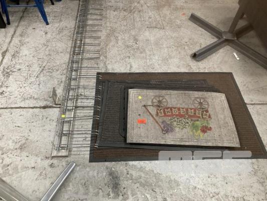 7 x ASSORTED RUBBER FLOOR MATS & OVERHEAD WINE RACK, 210cm