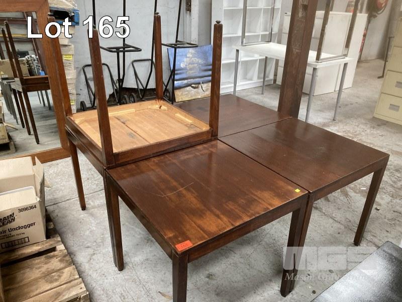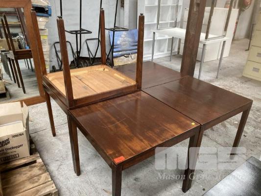 5 x CAFE TABLES, 75 x 75cm, STAINED TIMBER