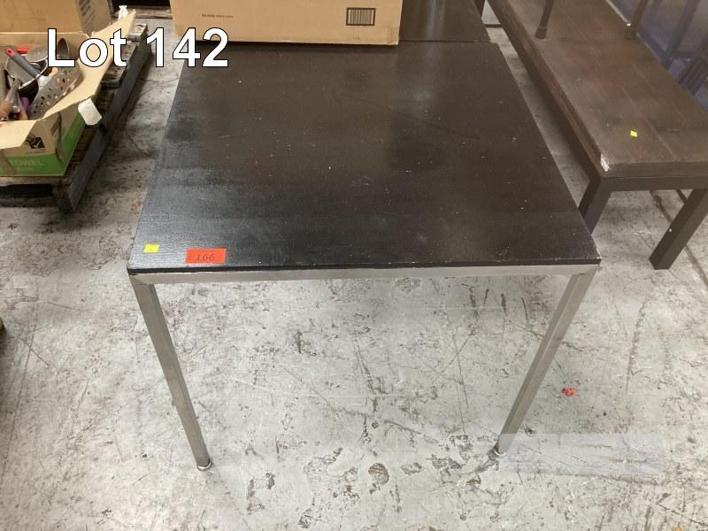 4 x CAFE TABLES, 75 x 75cm, TIMBER TOP, STAINLESS STEEL FRAME
