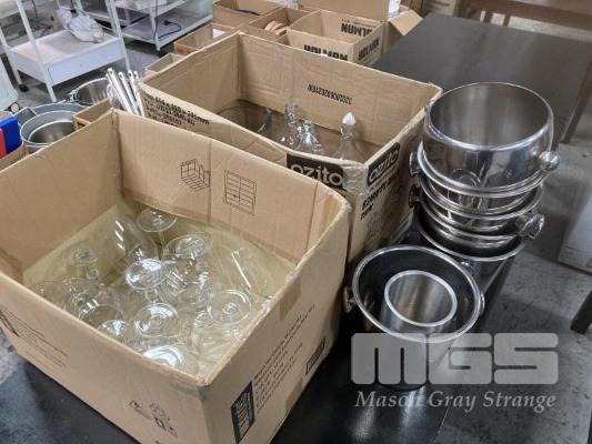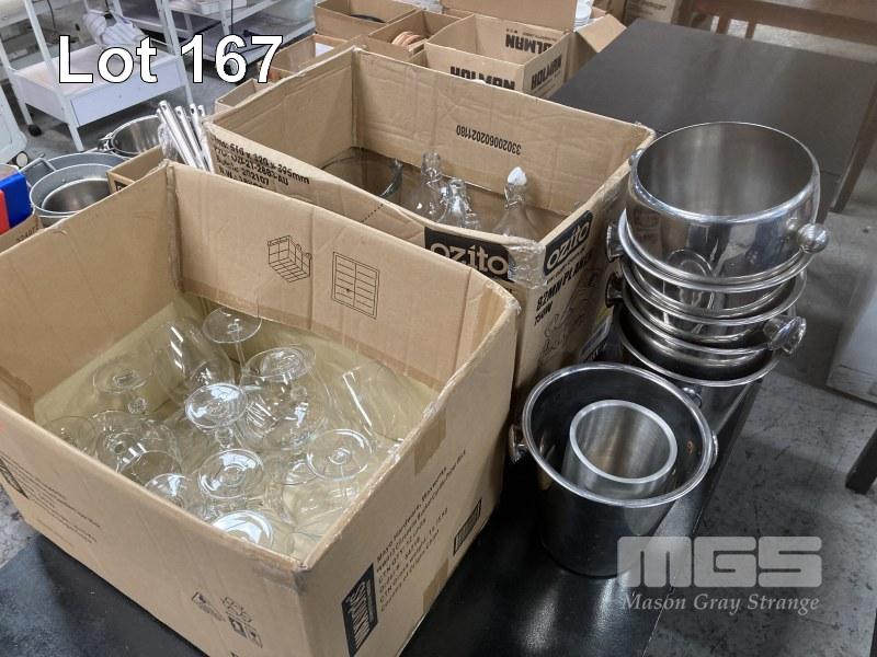 WATER BOTTLES, ICE BUCKETS & ASSORTED GLASSWARE