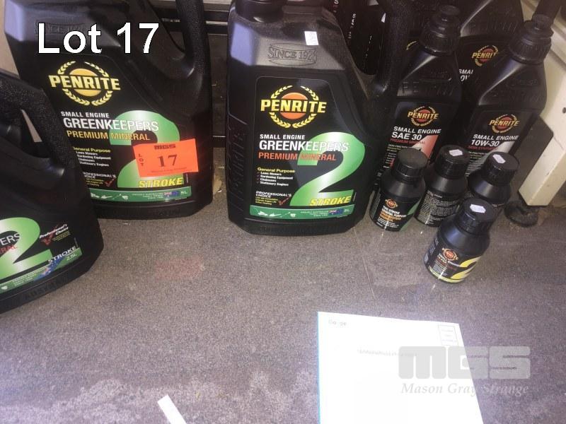 14 x BOTTLES PENRITE SMALL ENGINE OILS, INC 2 x 5L, 9 x 1L, ASSORTED