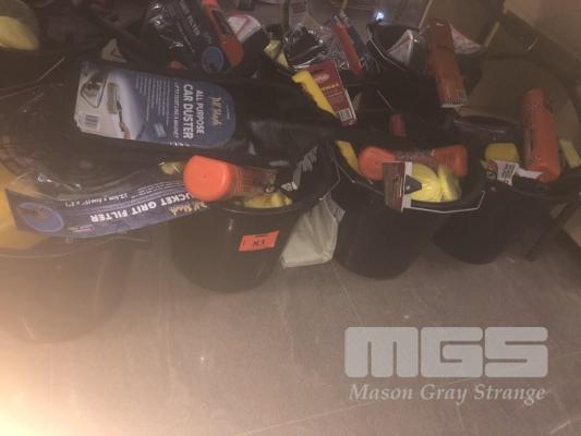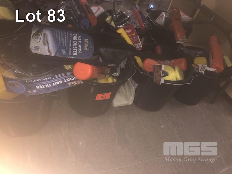 4 x COMBINATION CAR CARE KITS, DUSTERS, BRUSHES, CHAMOIS, ETC