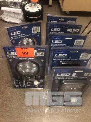 7 x LED SPOT LIGHTS, 5 x SQUARE, 100mm & 2 x ROUND