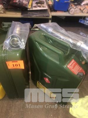 PAIR 20 LITRE STEEL JERRY CANS, GREEN