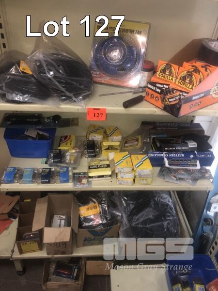 PART SHELF GORILLA TAPE, FUSES, TERMINALS, SPIRAL BLACK WRAP, AERIALS & MORE