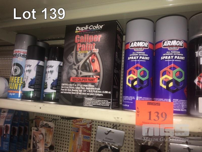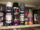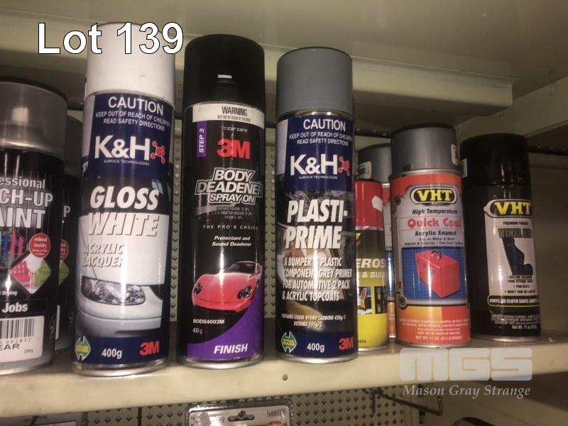 1 x SHELF, 18 x PAINT AEROSOLS, VHT, K&H, HOLTS, ETC