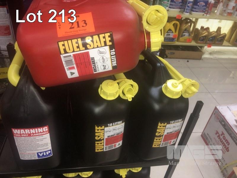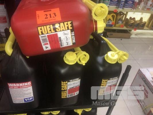 4 x PVC FUEL CONTAINERS, 10L, (3 x BLACK & 1 x RED)
