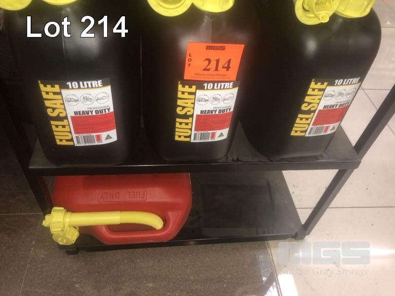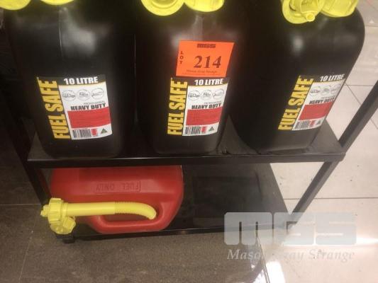 4 x PVC FUEL CONTAINERS, 10L, (3 x BLACK & 1 x RED)