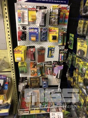 CONTENTS OF RACK INC LENS REPAIR KITS, THREAD TAPE, QUICK STEEL, SILICONE, GLUES & RACK