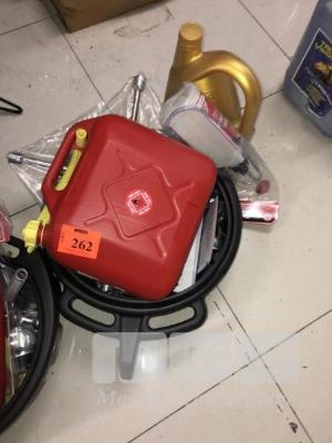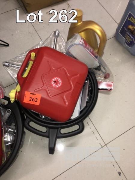 OIL CHANGE KIT, DRAIN, OIL FILTER TOOLS, WHEEL BRACE, FUEL CAN & OIL & TOM THUMB OIL FILTERS