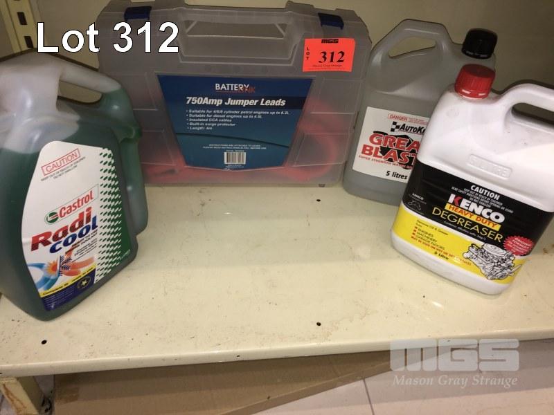750AMP JUMPER LEAD SET & GREASE BLASTER, CASTROL RADICOOL & KENCO DEGREASER