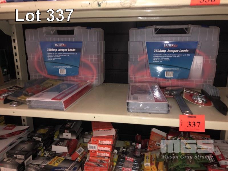 2 x SETS 750AMP JUMPER LEADS, SHIFTER, SOCKET SET, BIT SET, WIRE BRUSH, ETC