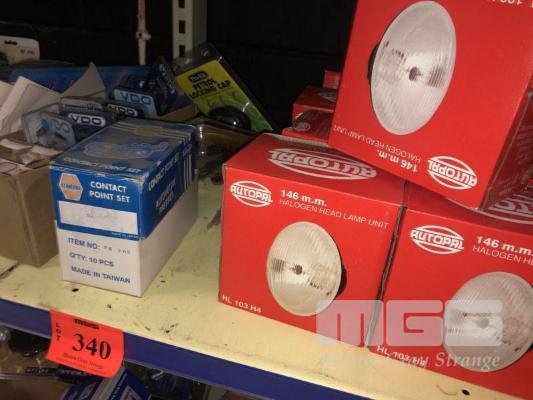 PART SHELF, AUTOPAL LAMPS, VDO TEMP SENDERS, HEATER TAPS, TOOLS, ETC