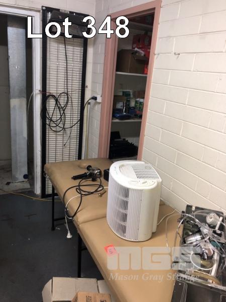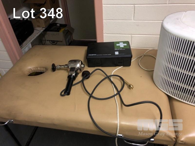 THE HOME RELAX KIT! MASSAGE TABLE, HAND HELD MASSAGER, OXYGEN RESUS, HEAT LAMP, FAN, FIRST AID KIT, VINTAGE EXERCISE BIKE, & PIPE