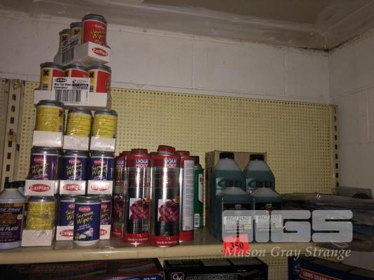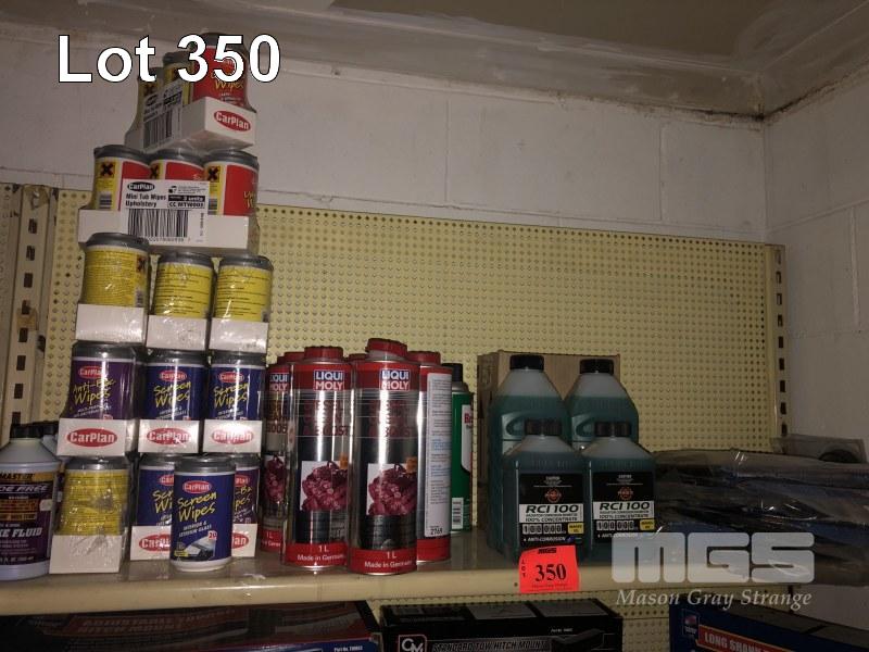 CONTENTS SHELF INC WINDOW SHADES, COOLANTS, LIQUIMOLY, DIESEL BOOST, CARPLAN WIPES, MASTER BRAKE FLUID