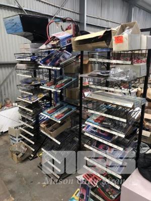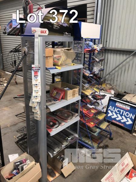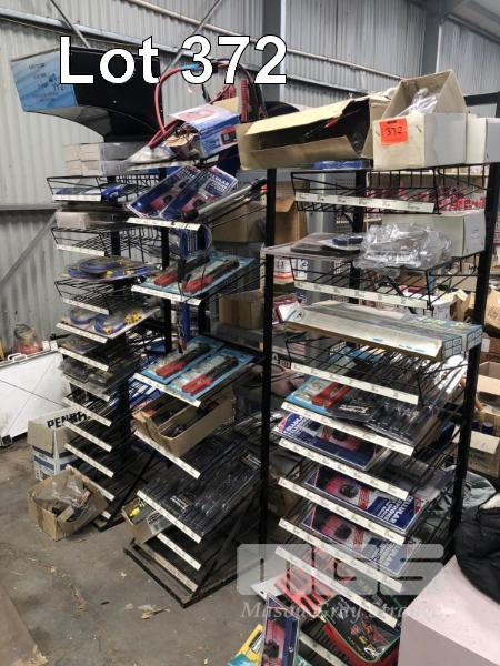 5 x STEEL DISPLAY RACKS & CONTENTS, SCREWDRIVERS, POP RIVET GUNS, IGNITION LEADS, JUMPER LEADS, GEAR PULLERS & MORE!