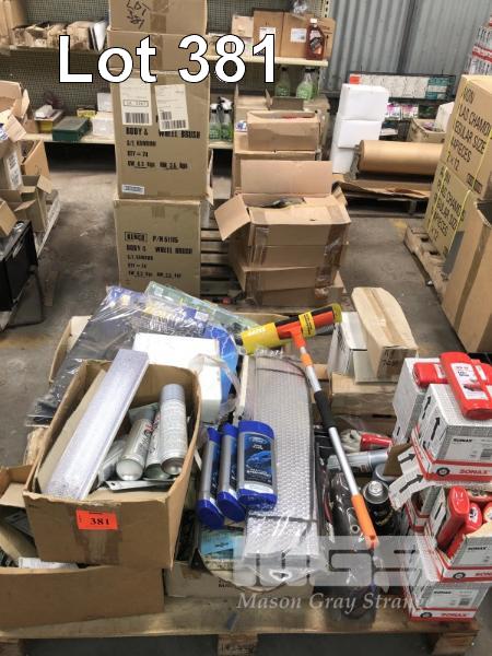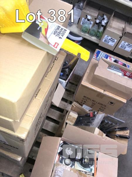 CAR CARE PRODUCTS & ACCESSORIES, CONTENTS OF 2 PALLETS, SHAMPOOS, EASY SHINE, WHEEL BRUSHES, GLASS CLEANER, SCREW DRIVERS, TAPES ETC.