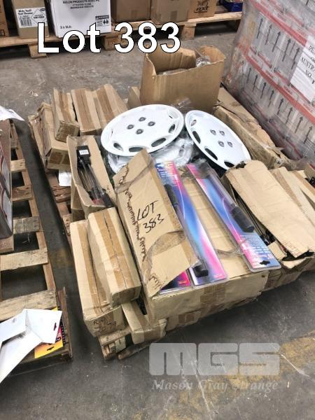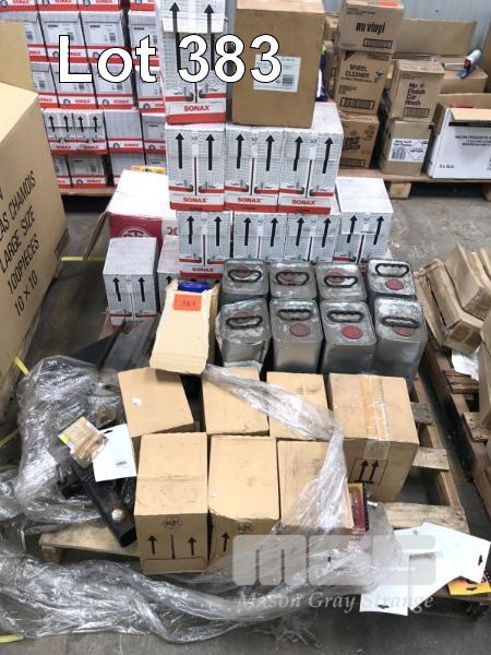CAR CARE PRODUCTS & ACCESSORIES, CONTENTS OF 2 PALLETS, SHAMPOO, INTERIOR CLEANER, LIQUID WAX, TAR REMOVER, WHEEL TRIMS, SCREW DRIVERS ETC.