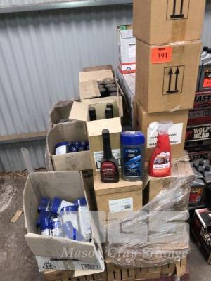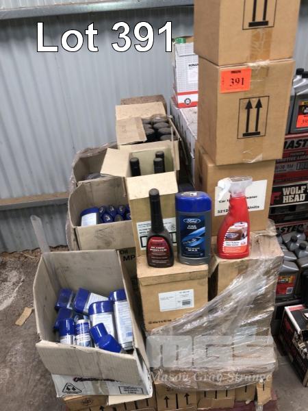 CONTENTS OF 1 PALLET, CAR CARE PRODUCTS, FORD CAR CARE WAX, TYRE & TRIM CLEANER, OCTANE BOOSTER, INSECT REMOVER, APPROX 60 CARTONS