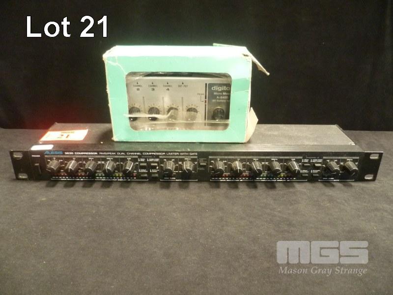 ALESIS 3630 COMPRESSOR, RACK MOUNT (NO POWER SUPPLY) & DIGITOR MICRO MIXER 9V BATTERY TYPE, A-8400