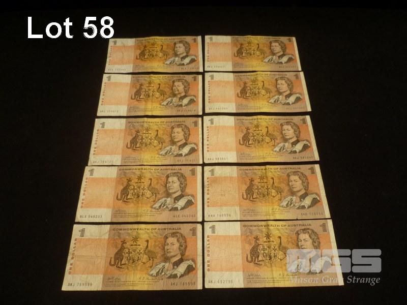 10 X COMMONWEALTH OF AUSTRALIA, $1 PAPER BANKNOTES, PHILLIPS/RANDALL