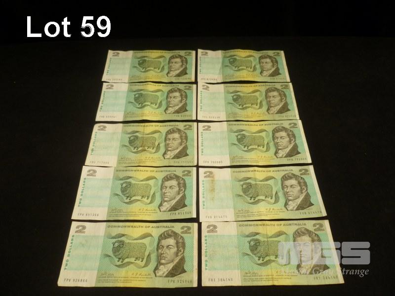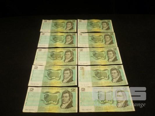 10 X COMMONWEALTH OF AUSTRALIA, $2 PAPER BANKNOTES, PHILLIPS/RANDALL