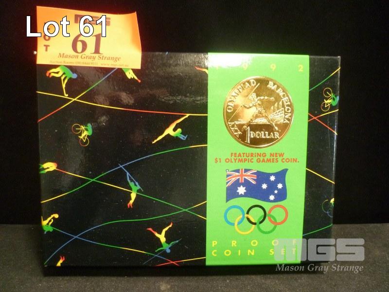 ROYAL AUSTRALIAN MINT, 1992, OLYMPIC PROOF COIN SET, FEATURING NEW $1 OLYMPIC GAMES COIN