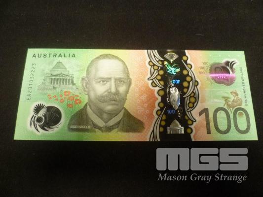 2020 AUSTRALIA, LAST PREFIX, UNC, $100 POLYMER BANKNOTE, EA 201032223