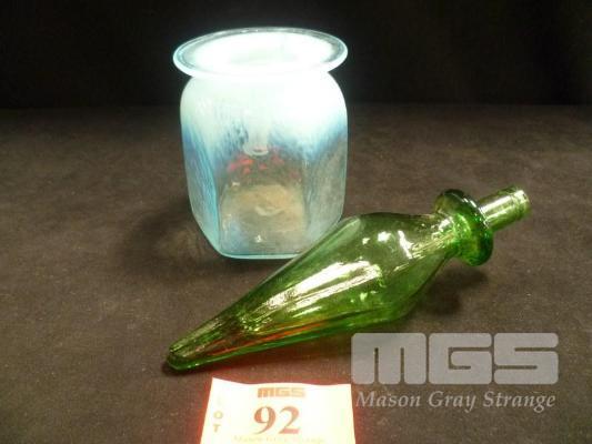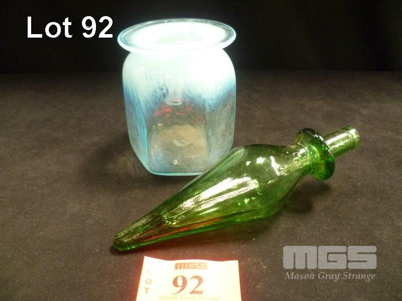 BLUE HAND BLOWN ART GLASS JAR, 11cm (H) & GREEN GLASS GENIE BOTTLE STOPPER
