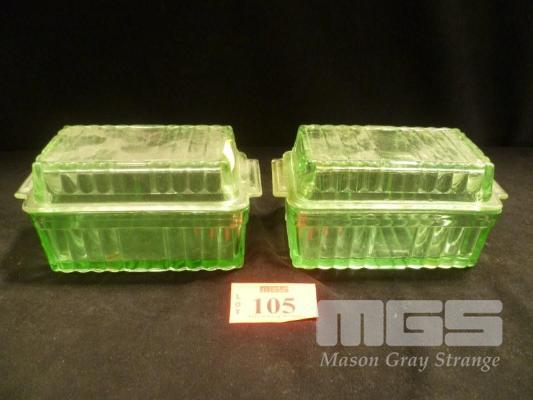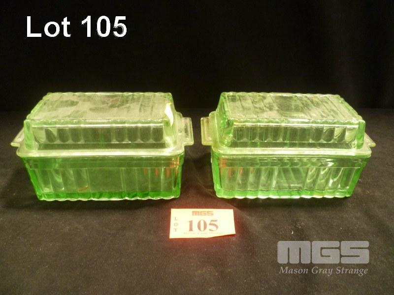 PAIR OF URANIUM GLASS BUTTER DISHES