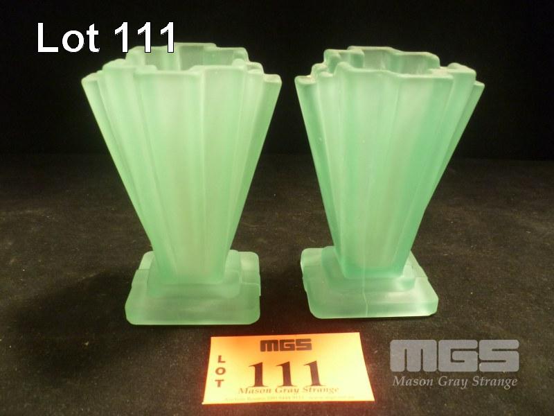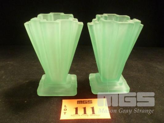 PAIR FROSTED URANIUM GLASS VASES, 10cm (H)