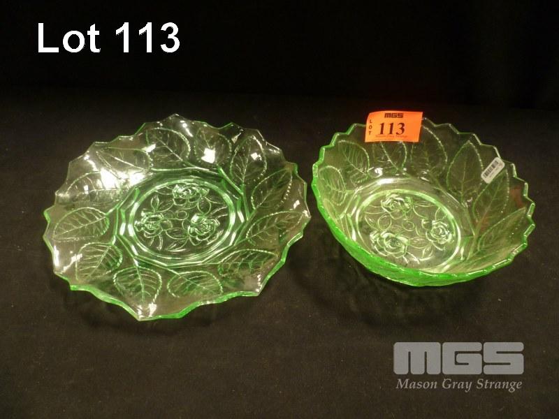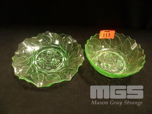 URANIUM GLASS BOWL, 19cm DIAMETER WITH MATCHING PLATE, 24cm DIAMETER